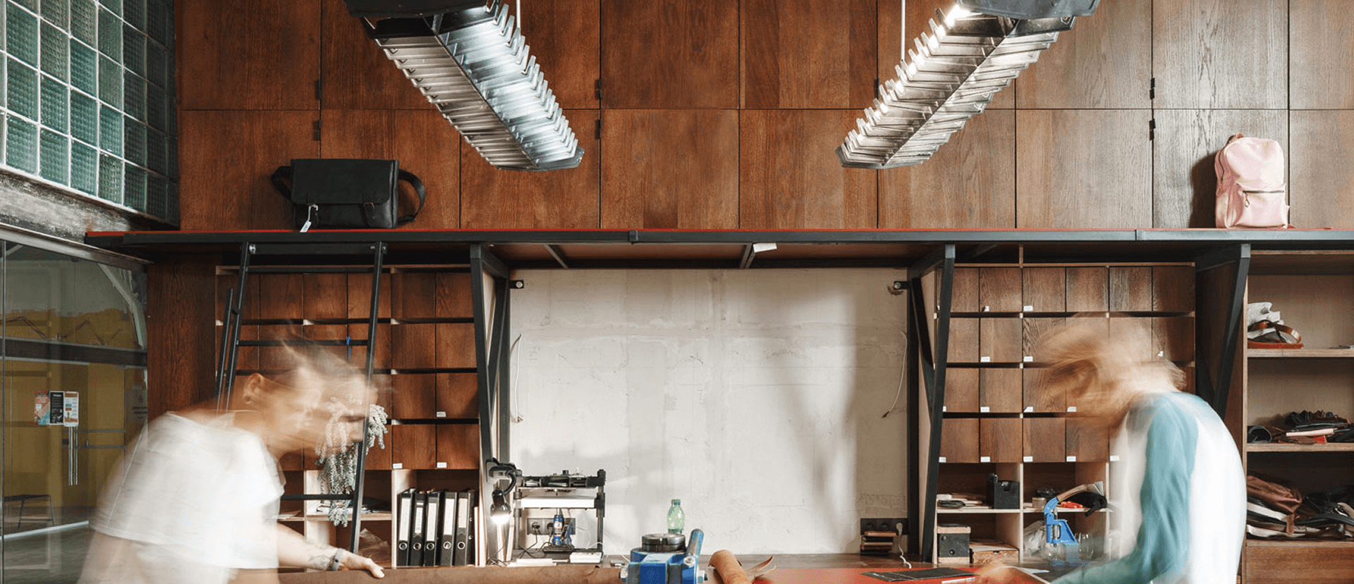 ПОЛЕ — це три поверхи і більш як 1000 кв.м площі, наповненої різними майстернями та робочими просторами: деревообробка, металообробка, кераміка, текстильна майстерня, 3D-друк, робототехніка / інженерія, мікробіологія. Це добре обладнані робочі зони, де можна розмістити розробку чи виготовлення свого продукту.