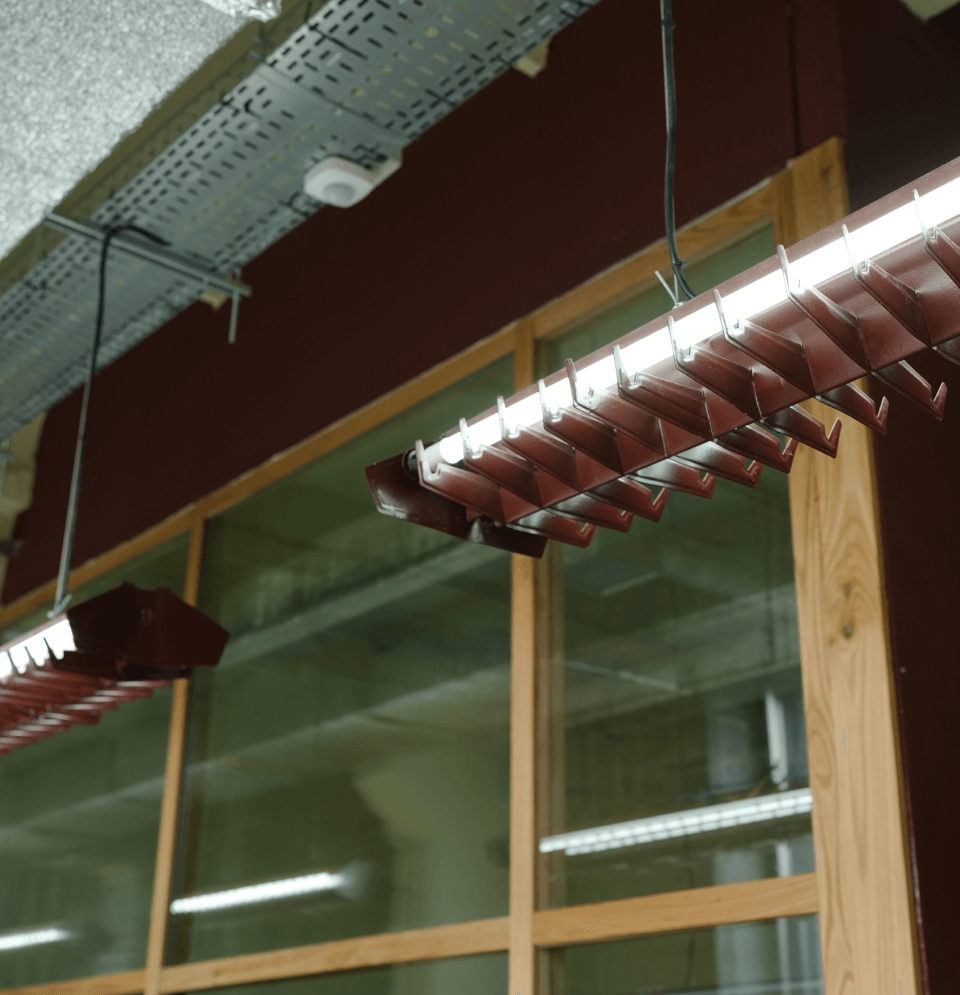 У 2021 році світильники використовувались у виробничих цехах заводу Промприлад. Під час ремонту світильники було перероблено. Замість люмінесцентних ламп встановили нові енергоефективні LED-лампи, відновили металеві частини — поґрунтували та перефарбували відповідно до кольорів дизайн-проєкту. Зараз світильники використовуються для освітлення офісних приміщень Центру розробок і продуктового дизайну ПОЛЕ.